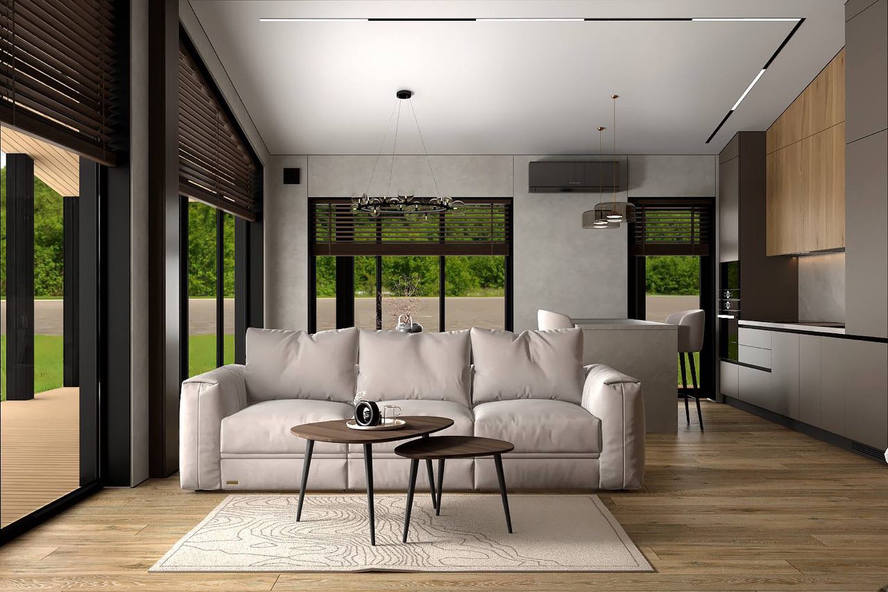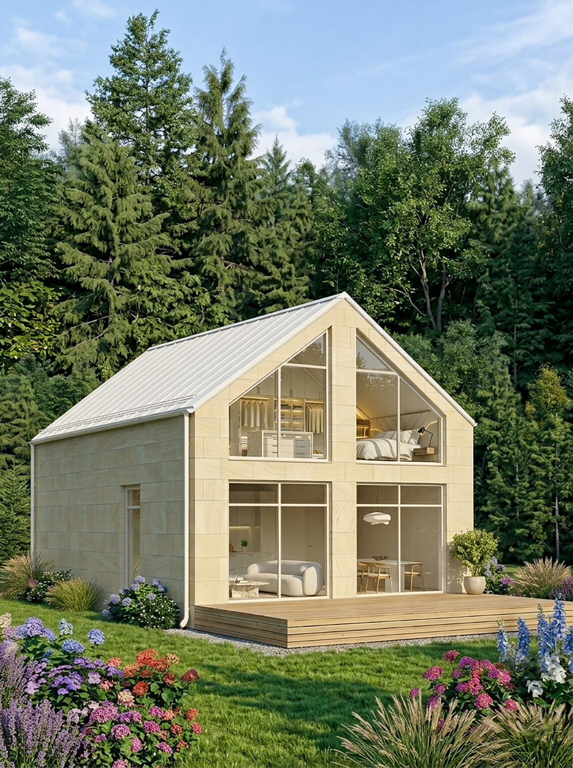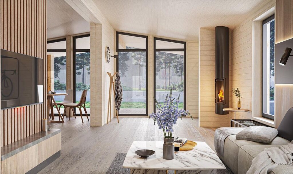 Odvětrávané fasády a vnitřní obložení z masivního dřeva třídy A dotvářejí dokonalou konstrukci.